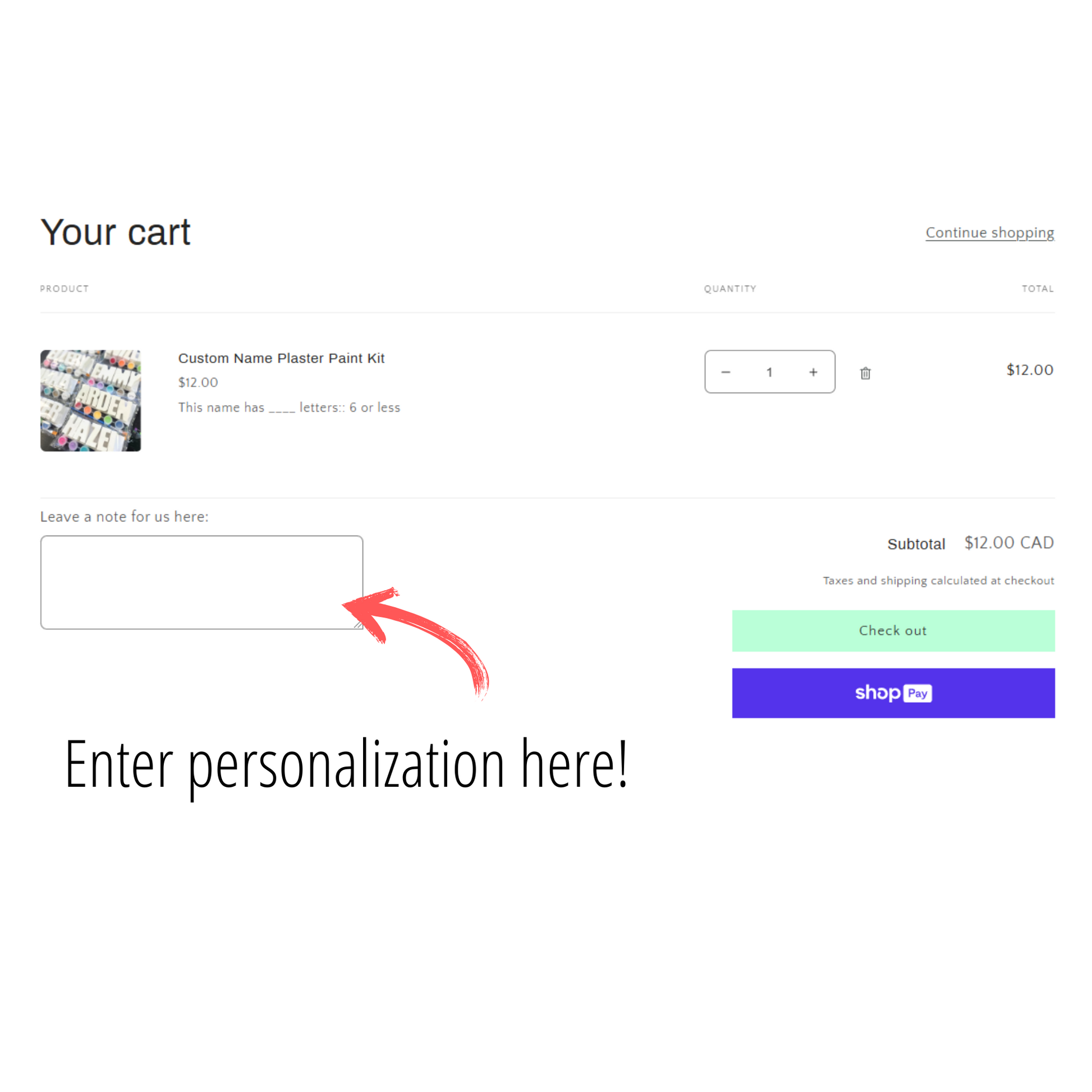 In the 'notes to us' box in your cart, please enter the name(s) to be spelled and the colour palette choice. Includes paintbrush.
