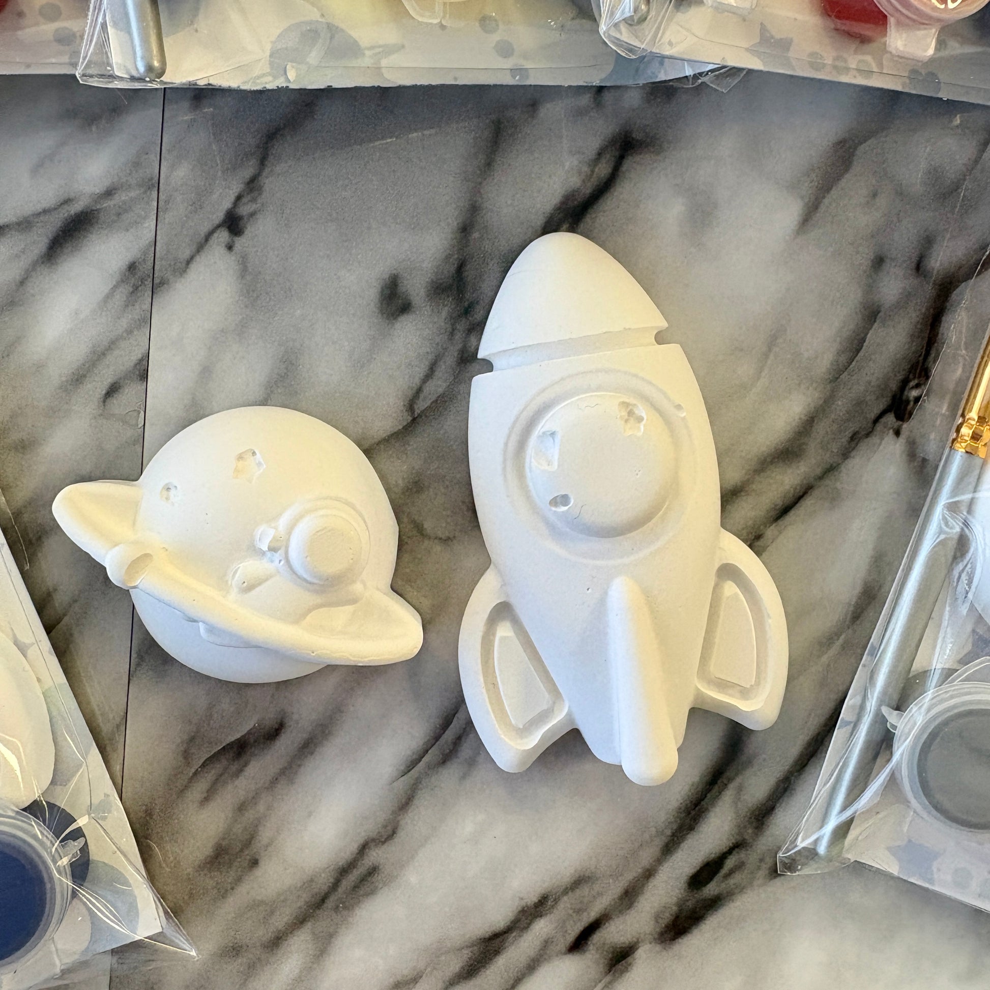 Create your very own custom planet, astronaut or rocketship figurines! Made from high quality plaster of paris and allowed to cure for several days (although still breakable if dropped).